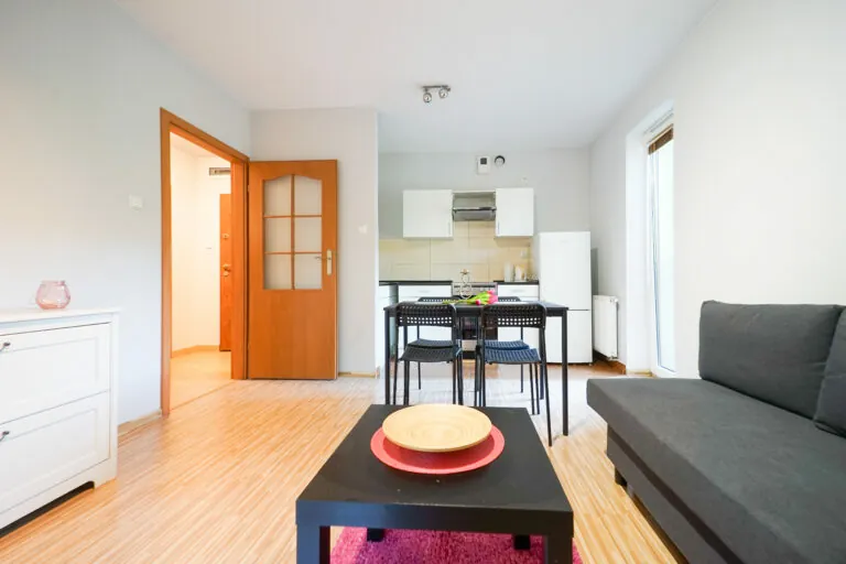 Look inside the lockers and check if all your things will find their place … and then decide if you want to rent me. I serve a latte to start the day well. I wash and dry clothes out of sight of your guests. I will spend the night for your family and friends on the fold-out sofa. I offer relaxation in a private garden, and I make autumn rainy evenings more pleasant with a 50-inch screening. I am filled with natural light, and when you need it, external blinds put me in a dark mood. I don’t use photoshop – the photos are nofilter and I’m proud of it. I recommend to rent an apartment at ul. Banach 55