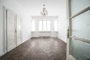 Do wynajęcia przestrzenne mieszkanie o powierzchni 111.65 m2, składające się z czterech pokojów dziennych, aneksu kuchennego, przedpokoju, dwóch łazienek i dwóch balkonów. Usytuowane na pierwszym piętrze w kamienicy. W budynku monitoring.