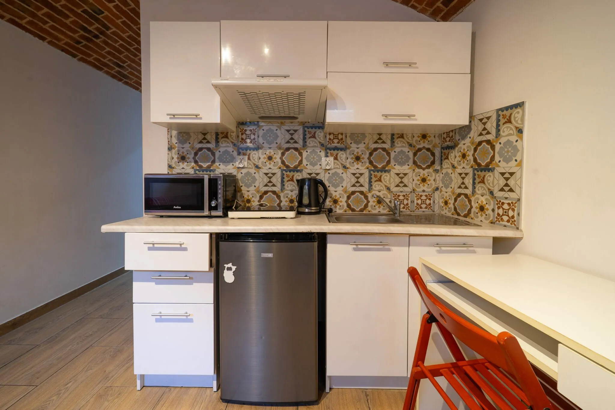 Mieszkanie na wynajem o powierzchni 21 m² znajduje się w niskim parterze. Oferuje komfortowe wyposażenie, w tym meble, pralkę, lodówkę i telewizor. Mieszkanie ma plastikowe okna oraz elektryczne ogrzewanie. Idealne dla singla lub pary.