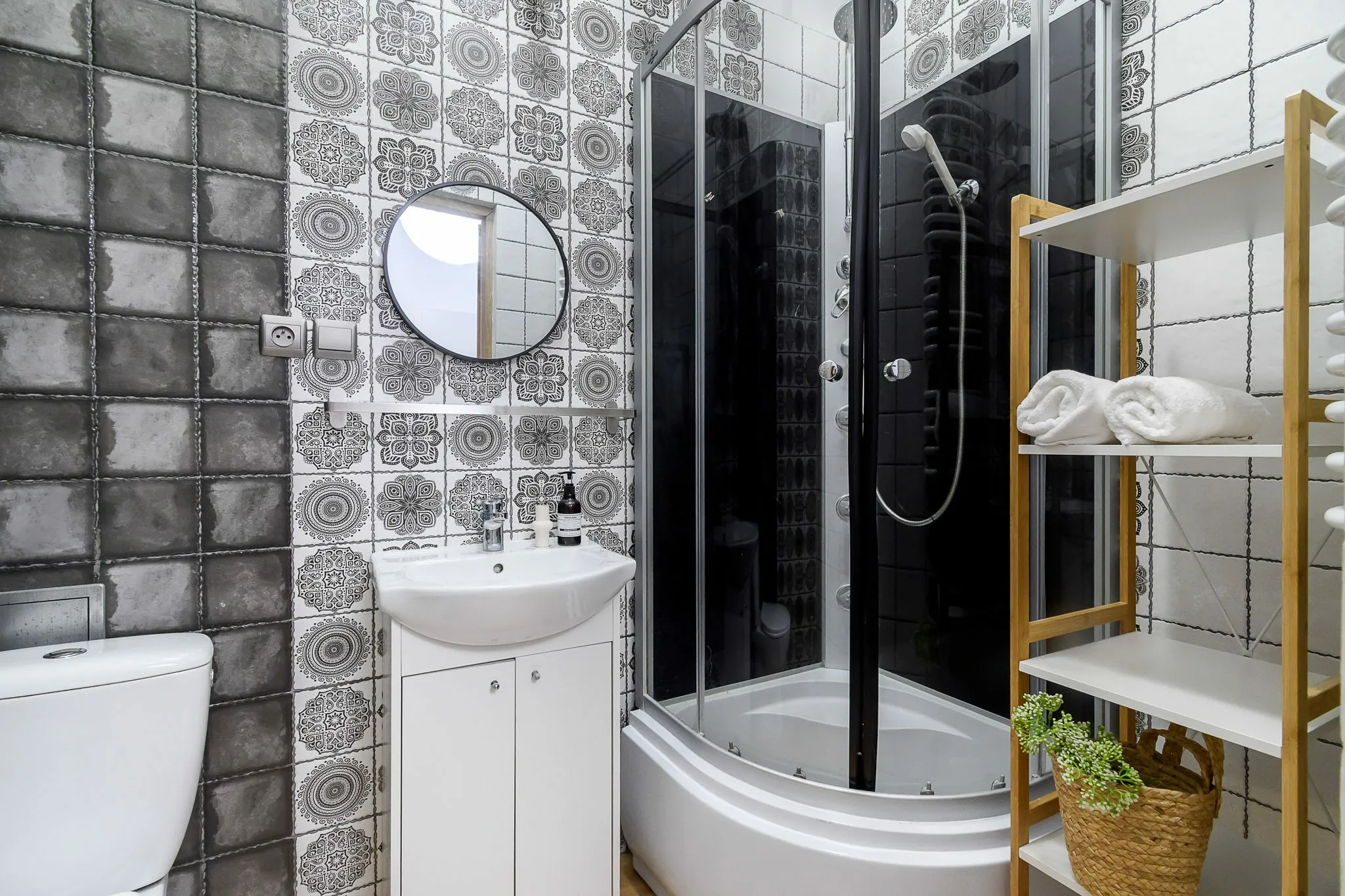 – łazienka z prysznicem